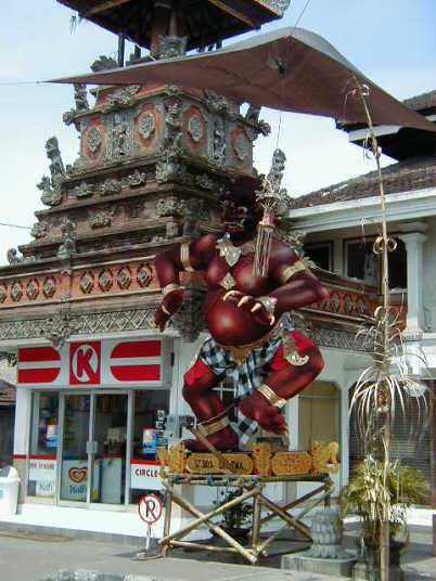 | 街中回り クタはバリ最大の繁華街 今夜担ぐ、町内会毎に作ったオゴオゴが置いてある | |