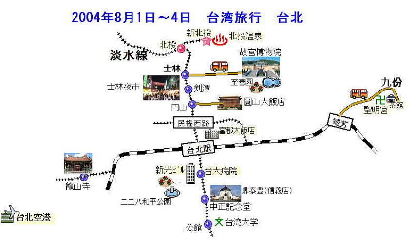 | 8月2日 | 九份観光 台北駅から列車で端芳駅下車 行きタクシー、帰りバス |