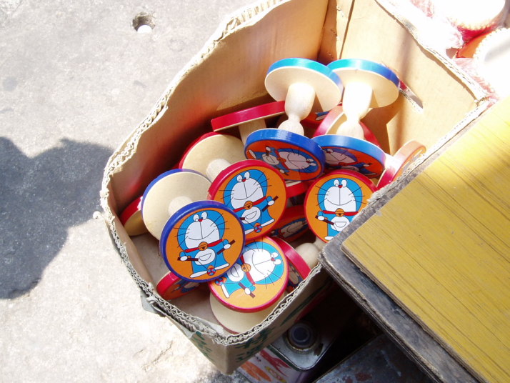 | ドラエモンはあちこちでいろんな商品にキャラクターで付いている。どら焼き、おもちゃ、お菓子 | |
