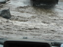 原因の一つは、基本乾燥気候だから排水設備が無いため、雨が降ると川が無いので至る所で出水し、道路が川になり土を削ってまう。
