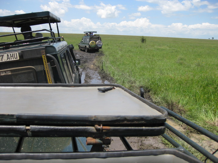 ・タンザニアのドライバーはのんき。悪路でのスタックから抜け出すためのロープ・板・スコップ等の必須アイテム装備無で平気。