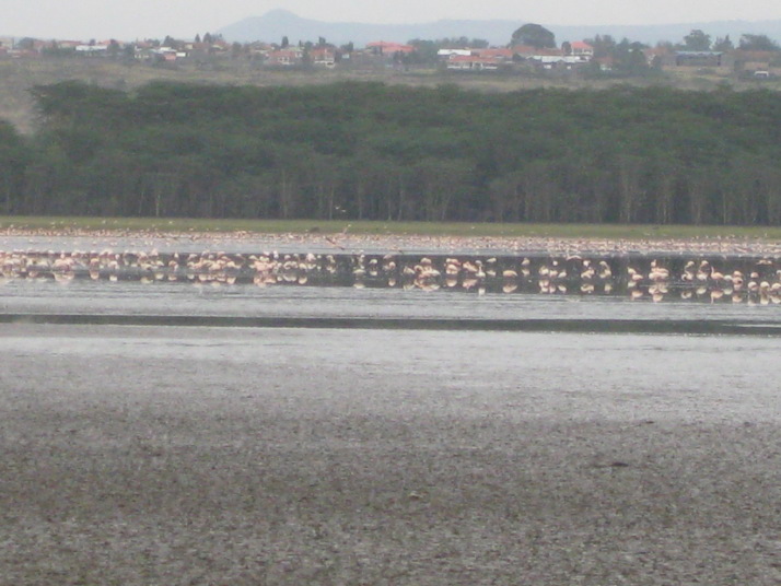| ・ナクル湖近くの住宅がフラミンゴの先に見える | ||||