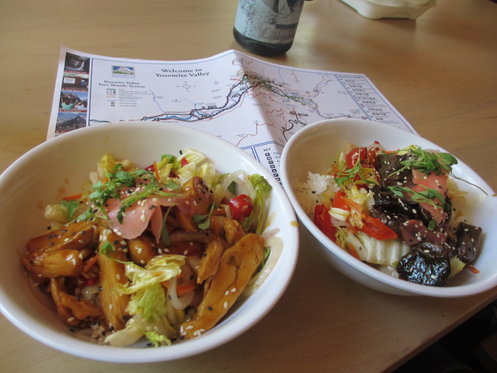・朝1番 7:21発のバスでヨセミテ公園へ 8:30キャンセル待ちのトライNGだったので、散歩へ ・近くのヨセミテ滝(下流)を見てすぐ戻り、10:30発のキャンセル待ち1番席に並びゲット!!! ・窓口で料金54$を払い込み、グレーシャーポイント行きバスに乗り込む。4回の挑戦でゲット! ・大展望を満喫しバスで戻り昼食。バスの客47名中バスで戻ったのは4名のみ、他は歩行下山。 ・シャトルバスで16番のバス停に行き、バーナル滝ミストトレイル(1.5マイル)へ ・18:00YARTSバスでLodgeに戻り、再度ピザをテイクアウト、ビールで乾杯 宿泊:Yosemite view Lodge, El Portal 売店にはお土産以外に食料もそこそこに売っていた |