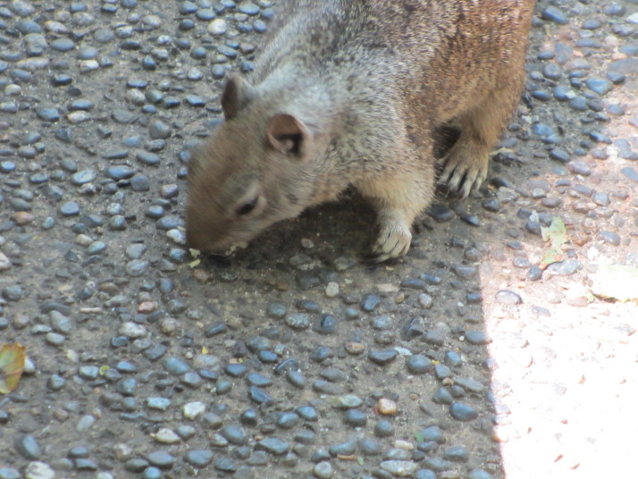 リスがベンチの周りを |