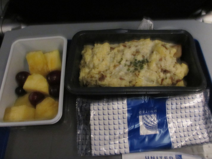 ・7:25、表の通りで車を待つが来ない。携帯で督促し、再度場所を確認、8:00少し前に到着 他の客を3組別々のホテルでピックアップし、空港に9時前には到着。 ・チェックインは専用端末で簡単に完了、登山ザックはそのまま荷物預けOKで、 無料Wi-Fiで時間つぶし。 ・フライトは満席、待ち合わせエリアは長蛇の列、 ・UA837 11:50発 機中泊 |