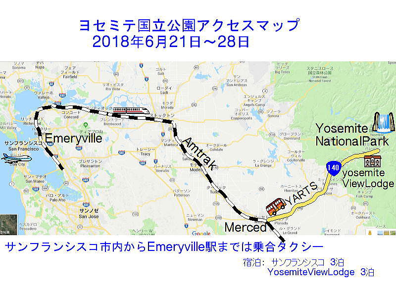 ヨセミテへ 列車とバスで移動 |